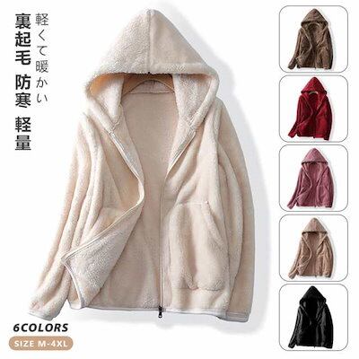ボア パーカー レディース ボアアウター ジャケット コート 秋冬 アウター ボアコート ジップアップ フード付き 暖かい 防寒 もこもこ 大きいサイズ