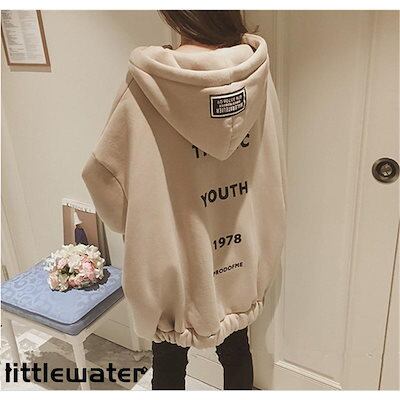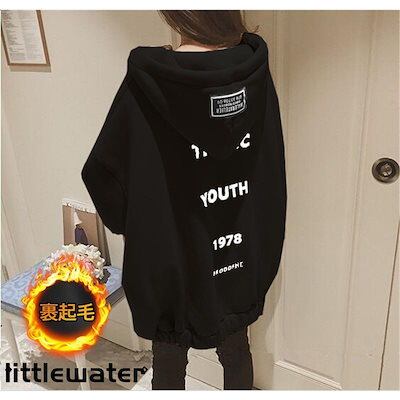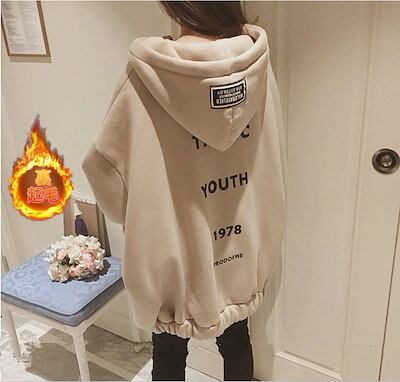 パーカーレディース前開きゆったりトップスアウター上品秋冬裏ボア暖かいコート裏起毛ボアパーカーフード付きスウェット