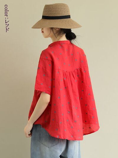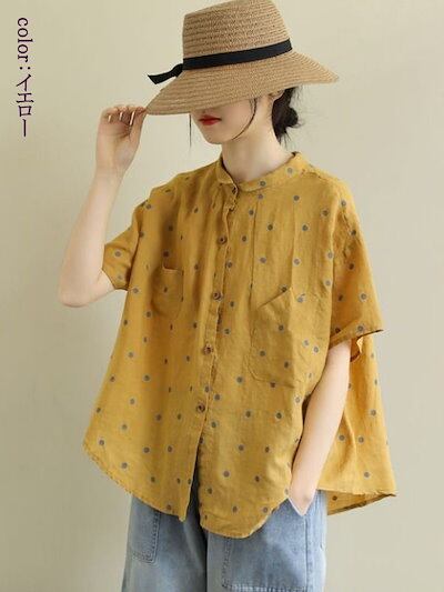 襟付き ブラウス 半袖 シャツ 花柄 可愛い カジュアル シャツブラウス レディース 折り襟 無地 シンプル ナチュラル ゆったり 襟付きブラウス 全開 ボタン留め トップス 体型カバー 春夏 通気性