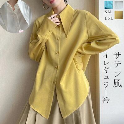 サテン シャツ レディース トップス 春 サテン調 ブラウス 長袖 とろみシャツ イレギュラー衿 シャツブラウス 前開き ブラウス 柄 長袖シャツ ボタン付き シンプル 無地 大きいサイズ ゆったり