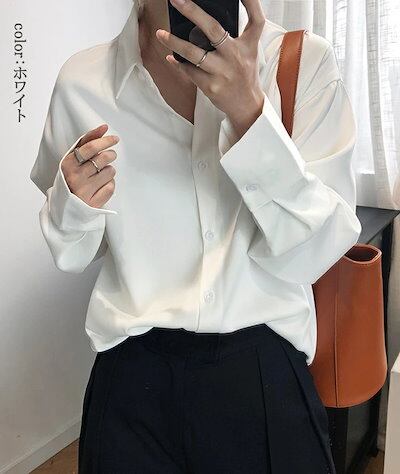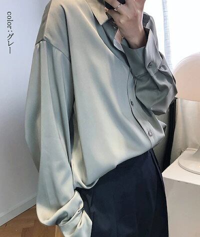 シフォン ブラウス 長袖 レディース 春 秋 サテンシャツ 折り襟 デザイン 長袖シャツ 無地 前開き トップス 長袖 羽織り ボタン付き アウター シフォン 全開 デザインシャツ お洒落 ゆったり
