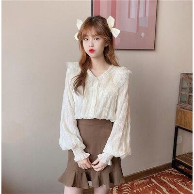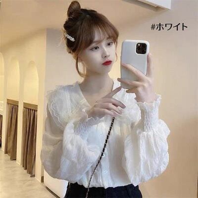 ブラウス レディース フリル ビッグ襟 ポワント袖 レース 透け感 ボタン 卒業式 ゆめかわ かわいい 女の子 入学式 長袖 春 秋 おしゃれ 上品