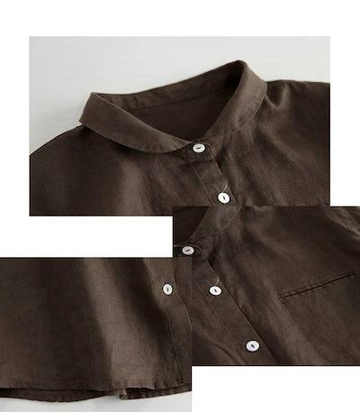 シャツブラウス レディース 綿 麻 シャツ 半袖 折り襟 前開き ボタン タック トップス ポケット付き ン 無地 ゆったり カジュアル 可愛い 半袖シャツ シンプル ホワイト 綿麻シャツ
