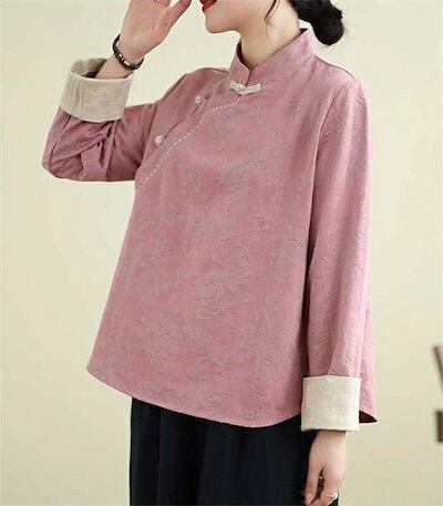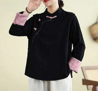 【急速出荷!】ブラウス チャイナ風 レディース 春秋 長袖 総柄 花柄 シャツ スタンドカラー ンブラウス 綿麻 トップス 刺繍 プルオーバー チャイナボタン ゆったり 着?せ きれいめ ナチュラル