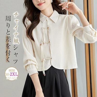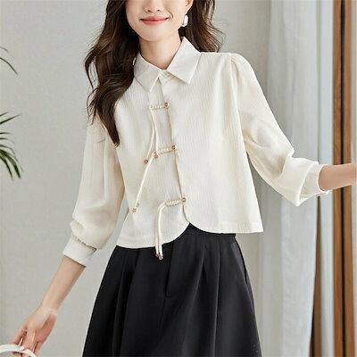 【急速出荷!】ブラウス チャイナ風 レディース 長袖 シャツ トップス ナチュラル チャイナボタン ショート丈 長袖 中華風ブラウス トップス 無地 シャツ ゆったり ナチュラル 春 夏 大人 かわい