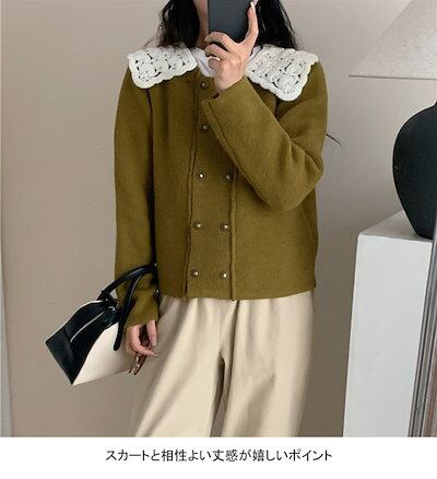 ニットセーター レディース 長袖 セーター ニット ジャケット コート レース襟 ボリューミー襟 厚手 トップス アウター ボタン付き プルオーバー 柔らかい 暖かい 大人可愛い おしゃれ シンプル