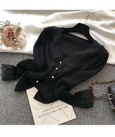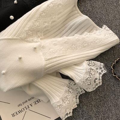 薄手 ニットセーター レディース インナー セーター Vネック 細身 伸縮 インナーシャツ レース襟 重ね着 インナーウェア ニット 肌着 ソフト Vネックセーター 薄手ニット レトロ 通勤 ホワイト