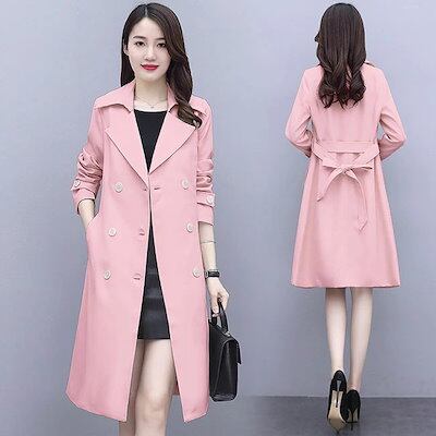 テーラードジャケット レディース ロングコート 無地 折り襟 ベルト付き ポケット付き 前開き トップス カジュアル 体型カバー 大きいサイズ シンプル 春秋 デイリー