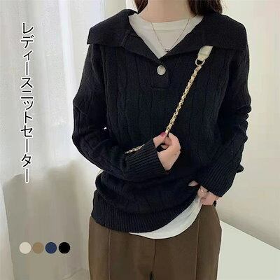 ニットセーター 長袖 セーター レディース ニット レディースセーター ポロ襟 折り襟 厚手 トップス アウター プルオーバー 柔らかい 暖かい 大人可愛い おしゃれ シンプル 無地 カジュアル 快適