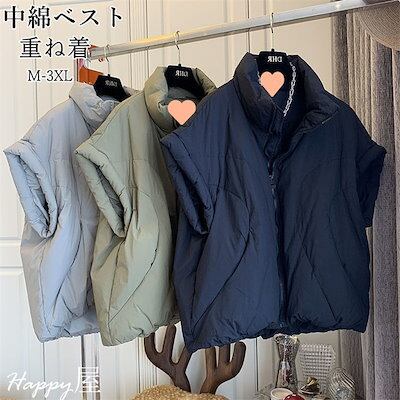 中綿ベスト レディース 中綿 アウター 立ち襟 ジャケット コート 無地 重ね着 大きいサイズ 着痩せ カジュアル 通勤OL 韓国ファッション 厚手 暖かい 秋冬