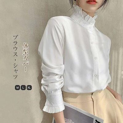 シャツ ブラウス レディース 長袖 フリル襟 新入庫 立ち襟 トップス 大人 可愛い
