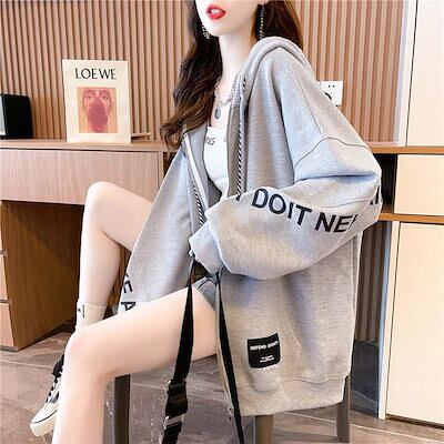 【限?折扣】2枚購入で 2oo円FF!ジップパーカー レディース オーバーサイズ 服 韓国風 裏起毛 フード付き スウェット ゆったり アウター 薄手 カジュアル スクエアシルエット