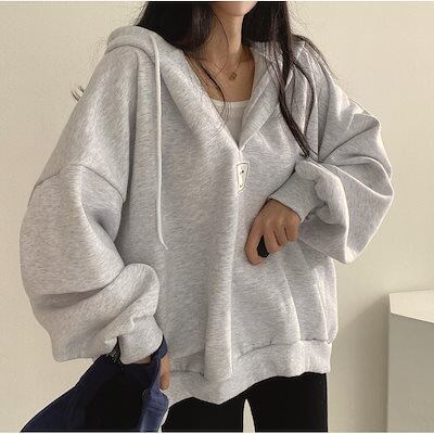 【限?折扣】メガ割 3日内出荷パーカー ゆったりスウェット 服レディースゆったりアウター スウェット怠惰な風蝶スリーブゆったりとした汎用性の高いVネックフード付きトップススウェットジャケ