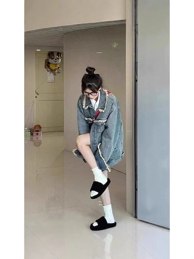2025新作 デニムジャケット レディース 古いフリンジコートを作る女春レトロでゆったりカジュアルなワークジャケット 春アウター 韓国ファッション