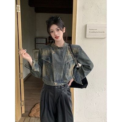 2025新作 デニムジャケット レディース 復古 せっけいかんかく ショート丈 スタンドカラージャケット 上着春アウター 韓国ファッション