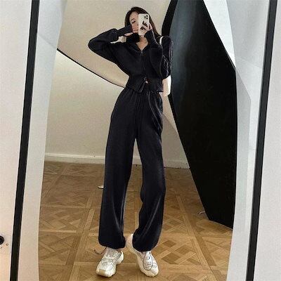 ロンT パーカー スウェット上下セット レディース スウェットセットアップ アウター フード付き スウェット ジャケット 二点セット スウエット トレーナー 即納!初秋 セットアップオールインワン(2
