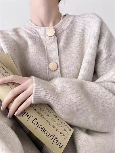 ニットトップス シンプルスウェットアウタークリスマス 大ニットカーディガン ニットセーター レディースベーシックニットトップスカーディガン(2-5日出荷)