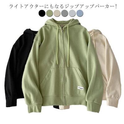 メガ割 レディース スウェットパーカー アウター ジップアップパーカー フード付き 長袖 トップス 羽織 パーカー ファスナーパーカー オーバーサイズ パーカ 薄手 無地 シンプル カジ