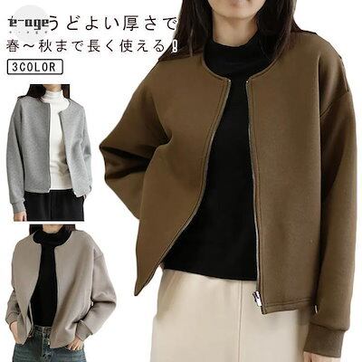 期間限定送料無料人気がある 秋 アウター 春 長袖 ゆったり きれいめ ブルゾン ジャケット スウェット スタジャン 大きいサイズ ノーカラー カーディガン 羽織り レディース