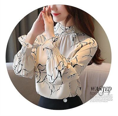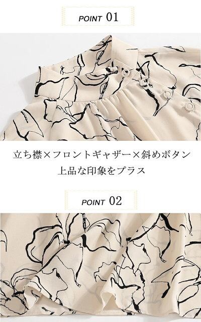 斜めボタン ブラウス 立ち襟 フリル 長袖 シャツブラウス レディース オフィス フォーマルブラウス フォーマル シャツ 花柄 バンドカラー 春 秋 長袖ブラウス シフォン お呼ばれ OL 仕事 学校