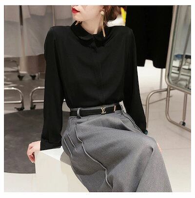 白 襟付き シャツ レディース 長袖 オフィス 上質 ブラウス フォーマル 丸襟 長袖シャツ ふんわり 柔らかい 軽い シャツブラウス 黒 グレー 白シャツ ボタン隠し カジュアルシャツ 無地 オフィ