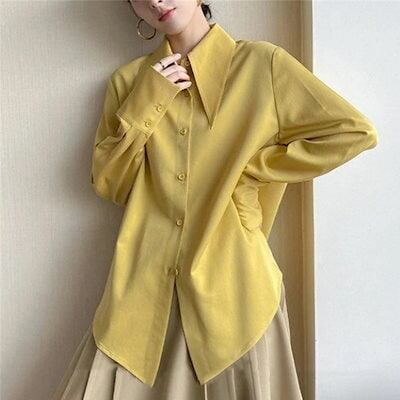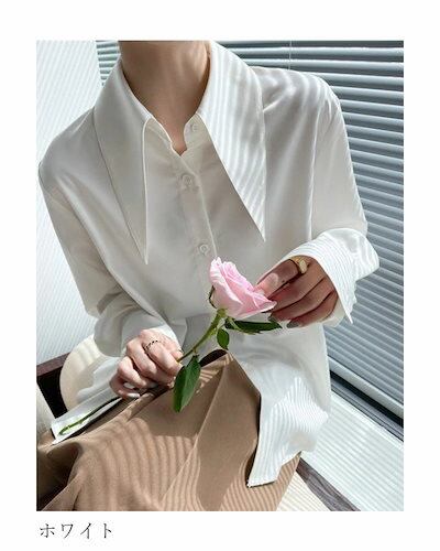 サテン シャツ レディース トップス 春 サテン調 ブラウス 長袖 とろみシャツ イレギュラー衿 シャツブラウス 前開き ブラウス 柄 長袖シャツ ボタン付き シンプル 無地 大きいサイズ ゆったり
