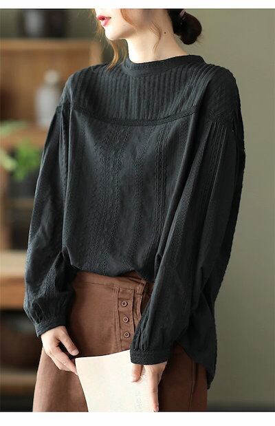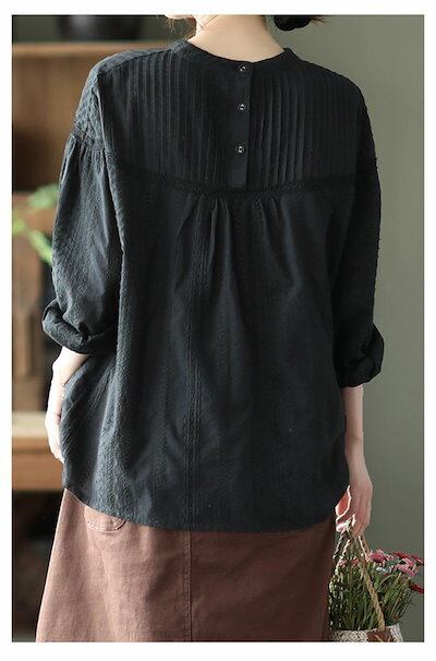 ブラウス レディース 透かし編み 長袖 プルオーバー ブラウス バックボタン コットンレース ゆったり 大きいサイズ クルーネック 薄手 綿 日焼け止め トップス シャツブラウス コットン 体型カバー