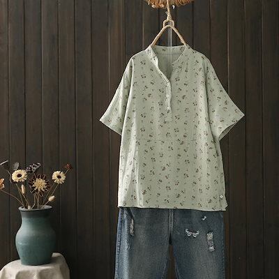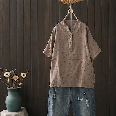シャツブラウス シャツ ブラウス レディース 夏 半袖 カットソー 綿シャツ トップス チュニック 綿 コットン ダブルガーゼ 立ち襟 ボタン 小柄 ゆったり 体型カバー 通勤 カジュアル 可愛い プ