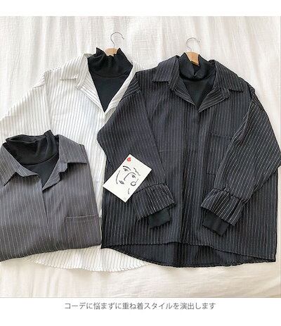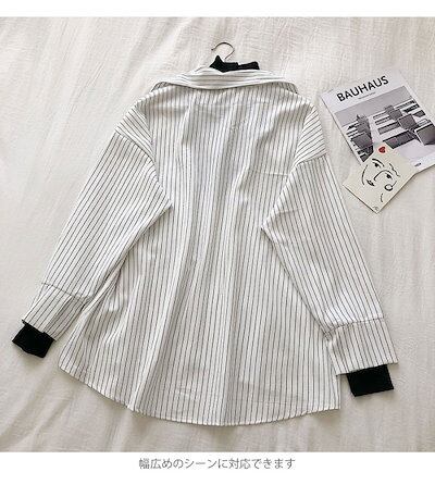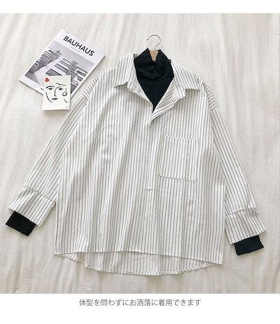 長袖ブラウス レディース シャツブラウス ブラウス ストライプ柄 ボタンシャツ フェイクレイヤード 切れ替え ゆるい カジュアル お洒落 キレイめ トップス 冬新作