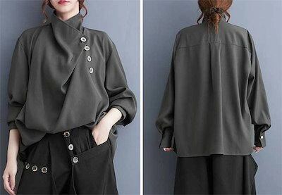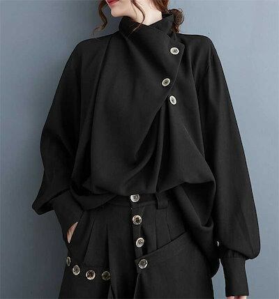 ブラウス レディース 長袖 きれい おしゃれ シャツブラウス レディース 襟ボタン付き 長袖 トップス フォーマル オフィス カジュアル シフォン 無地 ハイネック 着回し 上品 きれいめ 春 秋 通