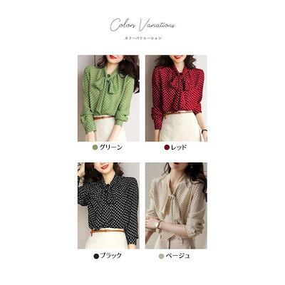 ボウタイ ブラウス レディース ビッグ リボン リボンタイ ボタン 卒業式 ドット柄 水玉 女の子 入学式 長袖 春 秋 おしゃれ 上品 きれいめ シャツ ゆったり 薄手