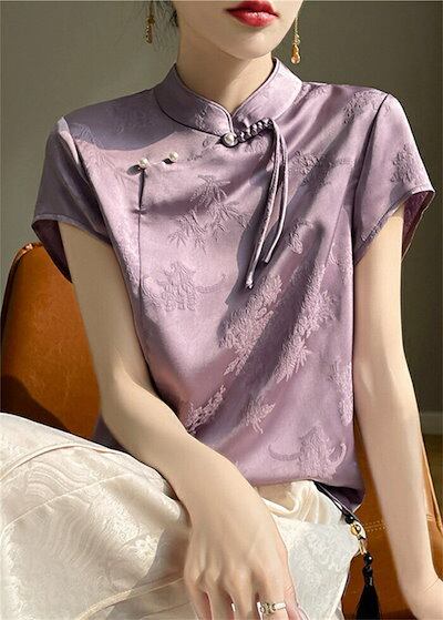 【急速出荷!】ブラウス チャイナ風 レディース 半袖 トップス 夏 薄手 立ち襟 チャイナトップス シルク風 花柄 刺繍 シャツ スタンドカラー プルオーバー チャイナボタン ゆったり エスニック 光