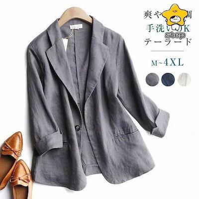 【3日以内出荷】ジャケット レディース スーツ テーラード ビジネス オフィス カジュアル フォーマル 麻調 麻 リネン リネンタッチ 春 夏 用 春夏 サマー 涼しい 軽量 洗える