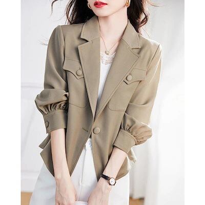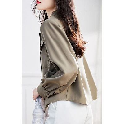 シンプル!ノーカラーコート春アウターカジュアル長袖コート春服作ブレザージャケットゆったりショート丈パーカーレディース韓国ファッション