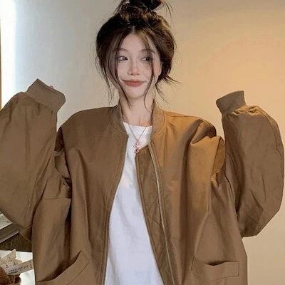 シンプル!ノーカラーコート春アウター春秋のビンテージベースボールウェアカジュアルジャケットレディース韓国ファッション