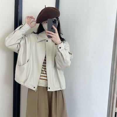 シンプル!ノーカラーコート春アウター春秋の作レトロな開襟シングルブレストレザージャケットPU皮ジャケット長袖コートレディース韓国ファッション