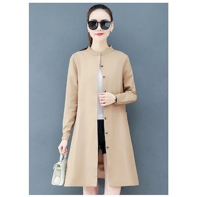 トレンチコート レディース 40代 ロング丈ジャケット スプリングコート 春コート カーキ Aライン