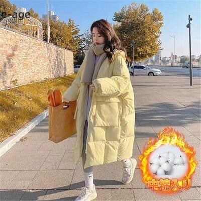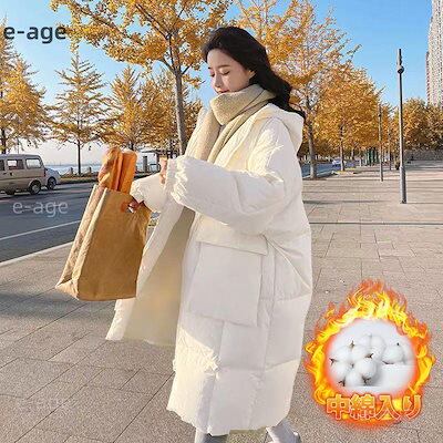 作トレンドダウンコートダウンジャケット中綿コートレディースロング丈軽い秋冬厚ベンチコートアウター中綿ジャケットフード付き防寒暖かい大きいサイズ