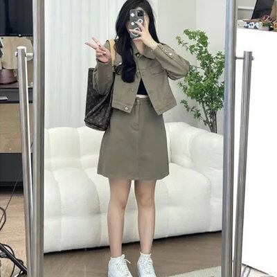 デニムスカート おしゃれ ジャケット カジュアル 秋 レディース 春 ジージャン デニム 3XL Gジャン 2点セット 上下 長袖 セットアップ トップス ボトムス アメカジ ビンテージ M L XL