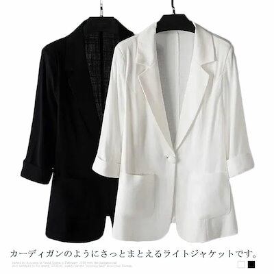 サマージャケット アウター レディース 夏 UV ロングカットソージャケット 綿混 綿麻混 七分袖 オフィス カジュアル ビジネス 母 ママ 春 夏 秋