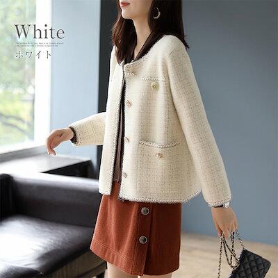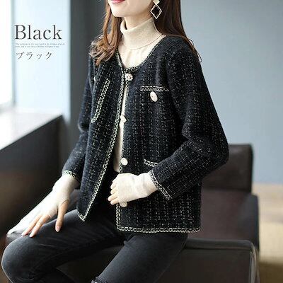 ニットカーディガン レディース カーディガン ニット ジャケット 夏 秋 カジュアル ツイード フォーマル 七五三 きれいめ ボレロ トップス 懇談会 長袖 パール (ツイードジャケット風カーデ