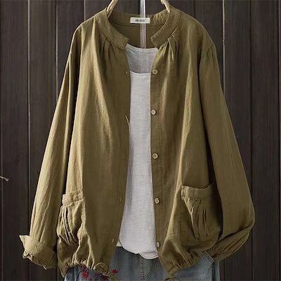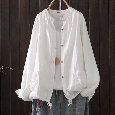 カーディガン レディース シャツ ブラウス ダブルガーゼ 春 夏 秋 長袖 ジャケット アウター シャツ 前開き 無地 フロントボタン トップス ガーゼ コットン カジュアル バンドカラー 綿 コット
