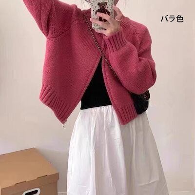 ニットカーディガン レディース 長袖 秋冬 ニット トップス ショート カジュアル ニットトップス ノーカラー ニットセーター ショートコート アウター ショートコート リブニット 羽織り ジャケット