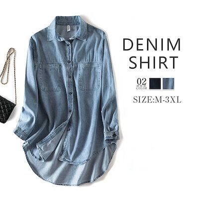 シャツ レディース ジャケット デニムシャツ 春 秋 デニム 長袖 羽織り 大きいサイズ 無地 シャツブラウス 前開き トップス デニム チュニック ライトアウター シャツジャケット シンプル カジュ