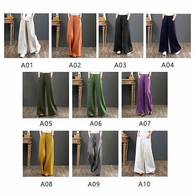 ワイドパンツ レディース 冷感 ボトムス シフォン 九分丈 ガウチョパンツスカート パンツ ゆったり ハイウエスト スウェット 薄