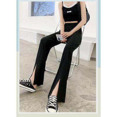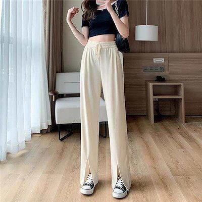 ワイドパンツ レディース ボトムス ガウチョパンツ フェミニン ゆったり ズボン 涼しい ストレート リラックス 接触冷感 スリット 着痩せ 送料無料