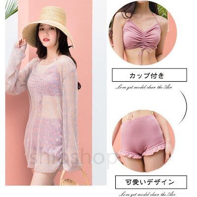 水着 レディース 3点セット 体型カバー UVカット ママ水着 海水浴 潜水 韓国風 可愛い 20代 30代 40代 露出控えめ おしゃれ ビキニ 温泉 レーストプッス