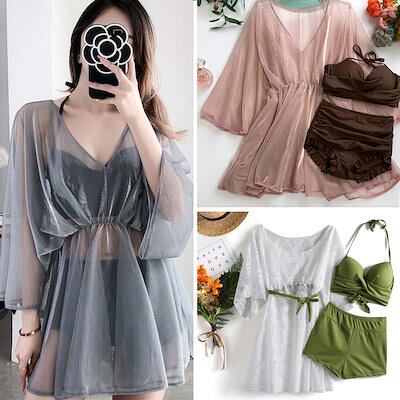2025春夏新作 水着 レディース 体型カバー 韓国ファッション 競泳 3点セット 新品 韓国 水着セット ビキニ フリル レース