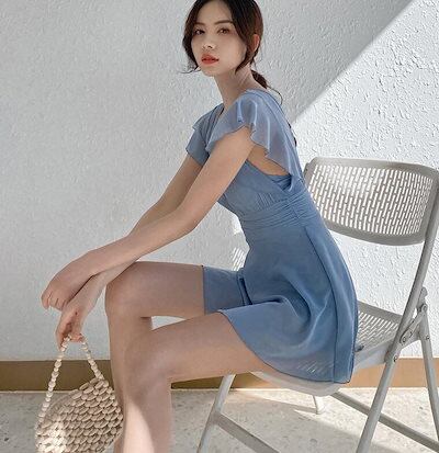 韓国風 レディース水着 ビキニ 露出控え ワンピース水着 オールインワン 連体 みずぎ 可愛い 小胸 バスト 盛れる ママ水着 タンキニ 大人水着 海 温泉 プール リゾート 体型カバー パッド付き