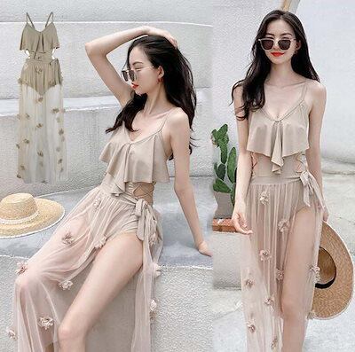 セット水着 オールインワン 2点セット 可愛い水着 セクシー 韓国風 水着 レディース ビキニ パレオ風スカート付き みずぎ 体型カバー水着 ママ水着 レディース水着 女性用 大人 夏 海 プール ビ